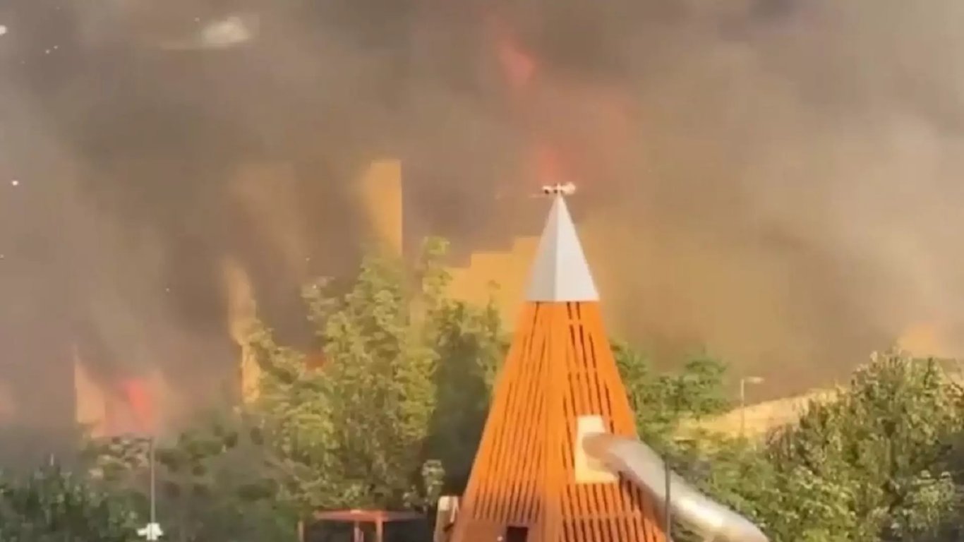 Мужчины с автоматами напали на здания и подожгли их. По информации местных пабликов, синагога практически сгорела.