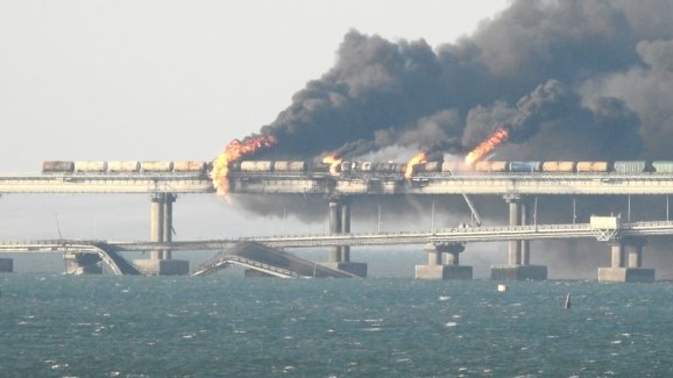 Согласно материалу издания The Sun, для Украины это основная цель — гротескная демонстрация против 10-летней российской оккупации. Уничтожение моста может значительно усложнить российские поставки в аннексированный Крым и заблокировать движение российских войск.