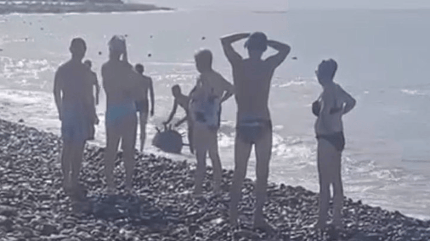На пляж у Сочі штормом викинуло морську міну. На відео відпочивальники, попри небезпеку, продовжували наближатися до предмета і викочували його на берег.