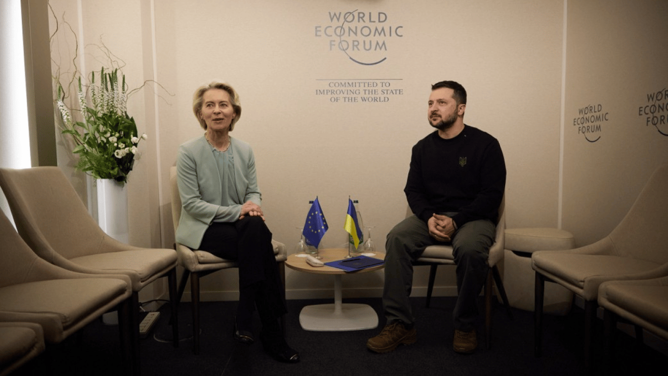Повідомляється, що на полях Всесвітнього економічного форуму в Давосі Зеленський та Урсула фон дер Ляєн обговорили ключові пріоритети порядку денного відносин між Україною та ЄС на найближчу перспективу. Передусім йшлося про наближення нашої країни до початку переговорного процесу щодо вступу до ЄС.